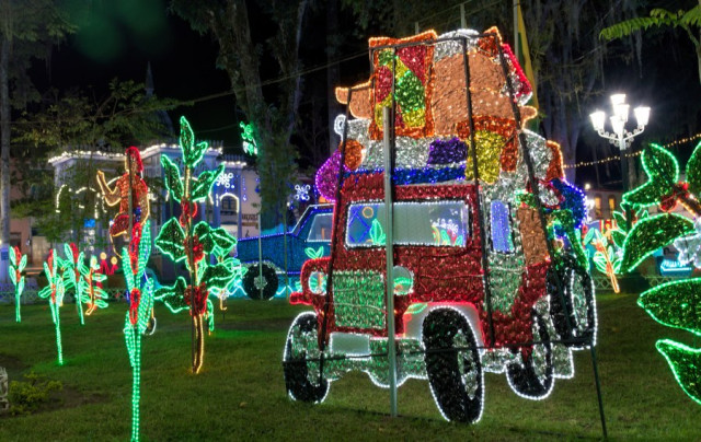 Se han dispuesto 144 figuras, que incluyen: un pesebre como la imagen central, escenas invernales con elementos voluminosos, contornos iluminados con mangueras LED alrededor del parque y luces en la fachada de la Basílica Menor de la Inmaculada Concepción.