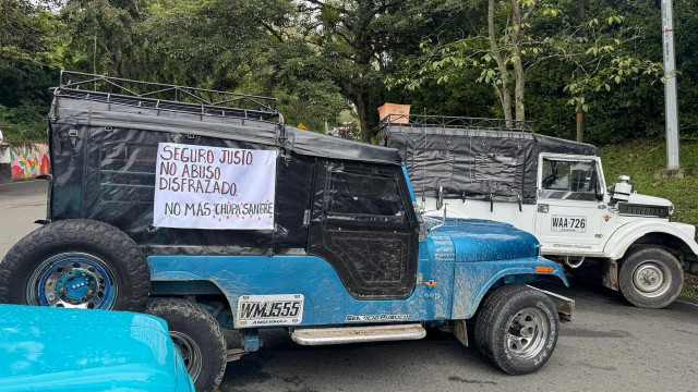 Transportadores denuncian supuestos abusos de una empresa en Caldas. La organización decidió no pronunciarse aún. 30 camperos bloquean el acceso a un municipio.