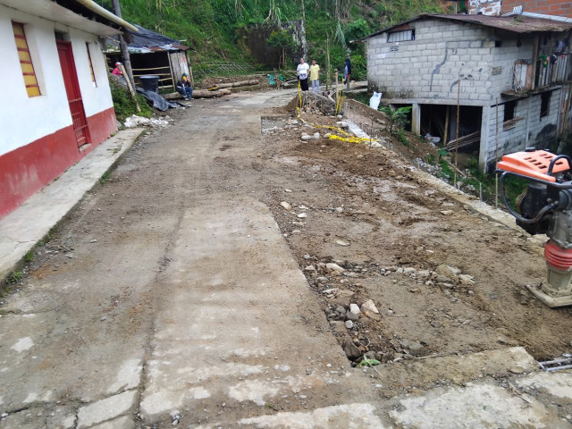 La calle de entrada al corregimiento de Arboleda desde Puerto Venus (Nariño, Antioquia) está cerrada por a reparaciones que se deben hacer sobre la calzada, en dos metros, para empalmar con la placa huella.