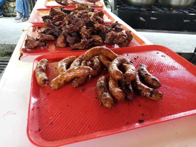 Chorizos, uno de los platos más apetecidos en las fiestas.