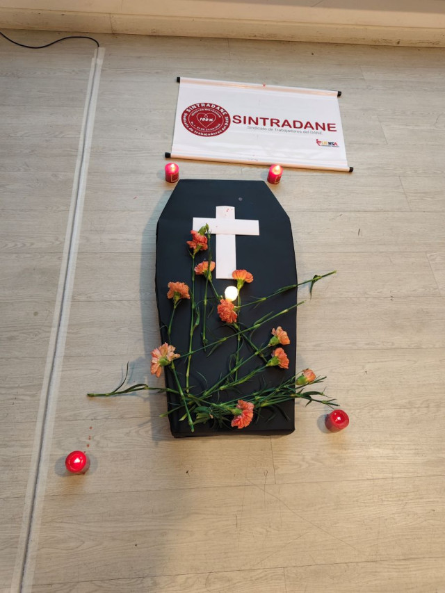 Velones y claveles fueron llevados por los integrantes del sindicato en protesta a la medida.