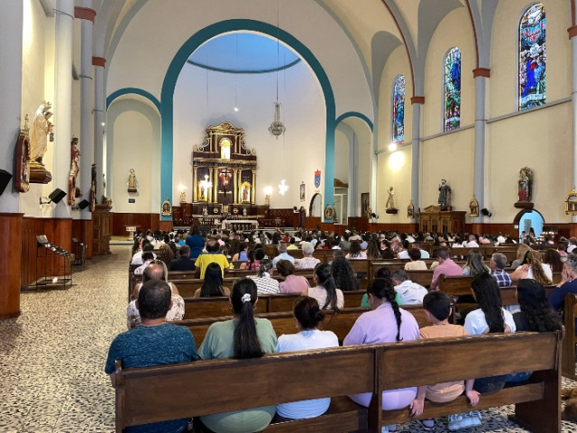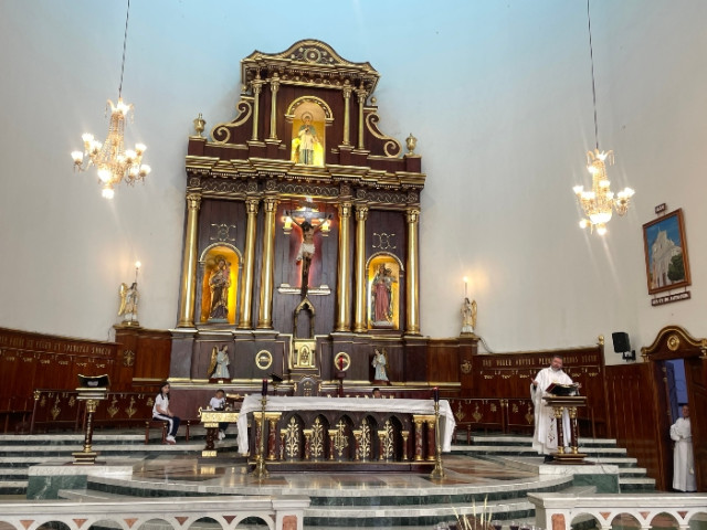 Foto | Diego Salgado | LA PATRIA Así luce en todo su esplendor el retablo del templo Nuestra Señora del Rosario de Aranzazu, después de su restauración.