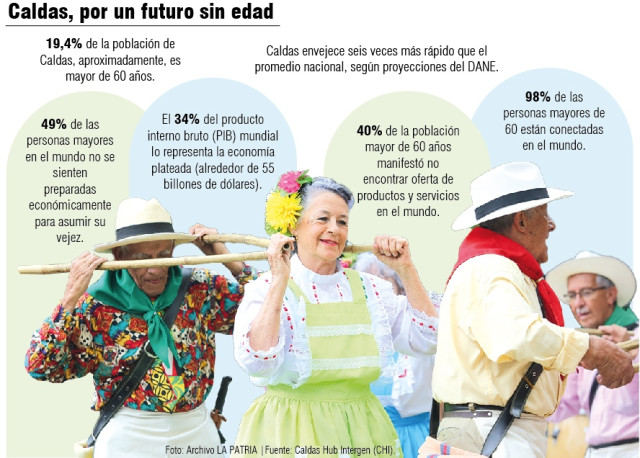 La población mayor de 60 años en Caldas supera las proyecciones del 2030 para Colombia (17,2% mayor de 60 años en el país). "Ya estamos fuera de esa media porque en el 2025 superamos ese indicador (ver infografía)", advierte Camila Palacio Arce, directora de Procaldas.
