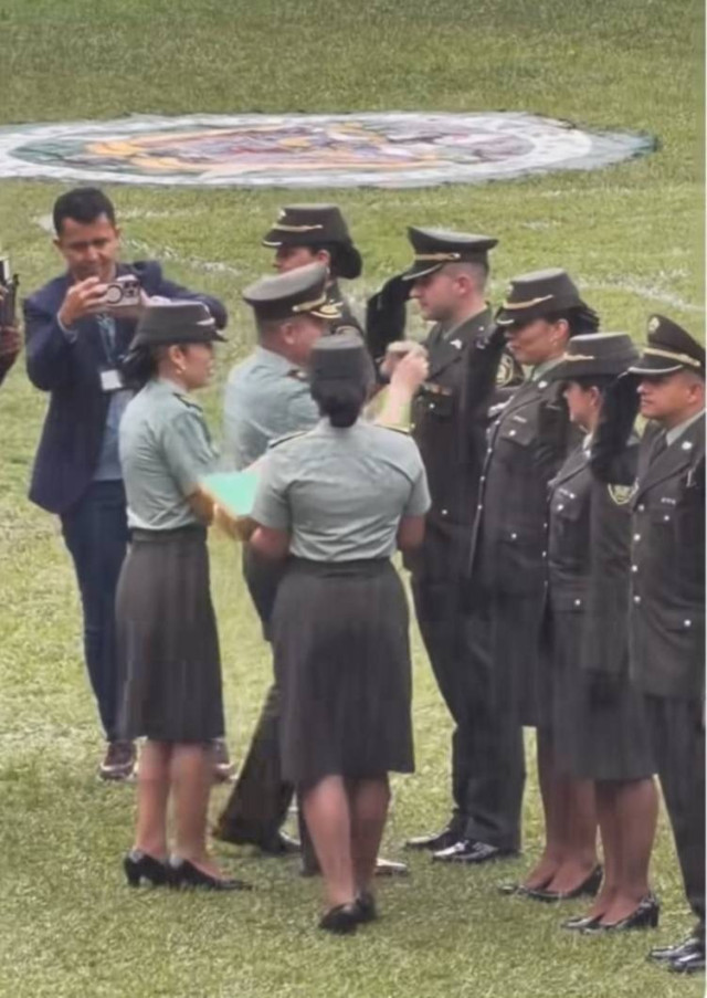 Su esfuerzo y buen desempeño en estas responsabilidades le permitieron el 17 de diciembre del presente año recibir el rango de capitán en la Escuela de la Policía Nacional en Medellín.