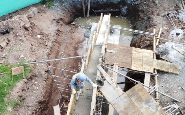 Así se va la construcción del puente que pasa por encima de la quebrada Rodas que colapsó en la ola invernal del 2022.