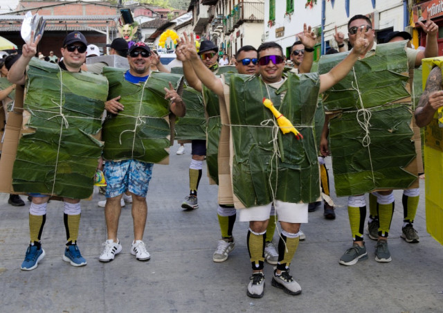En Salamina (Caldas) hicieron el Concurso de Comparsas y Años Viejos para culminar las celebraciones del 2025, año del Bicentenario del municipio. En la foto, el Jeque y los Árabes, una de las comparsas.
