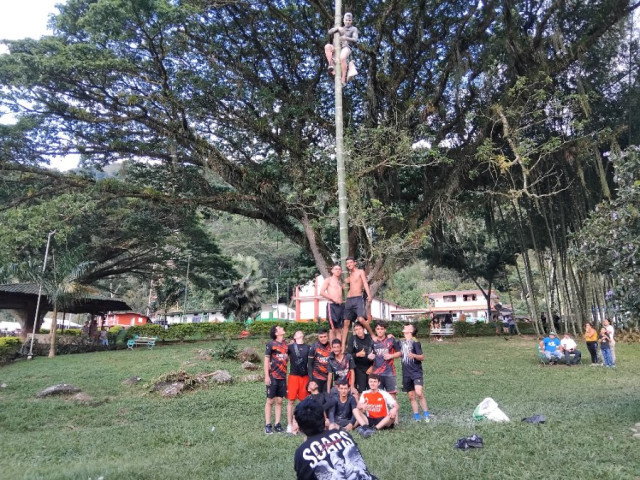 El ganador fue el jóven Robinson Cardona, visitante de la vereda Santa Teresa, quien logró con enorme sacrificio y riesgo, ascender por la guadua de 15 metros de altura, engrasada, hasta la punta donde estaba el premio.