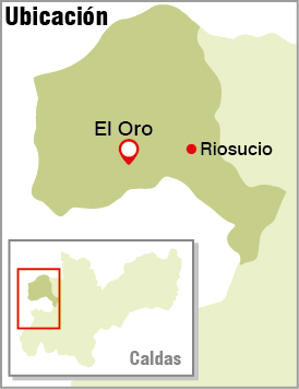 En el mapa, la ubicación de la vereda El Oro, de Riosucio (Caldas).