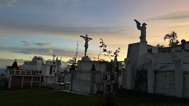 Fotos | Albeiro Rudas | LA PATRIA Las figuras religiosas se recortan al final de la tarde en el Cementerio San José de La Abuela de Caldas.