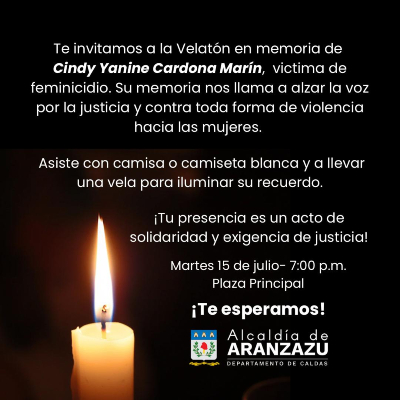 El evento se realizará en la Plaza de Bolívar de Aranzazu este martes a las 7:00 p.m. La comunidad espera manifestar su apoyo a la familia de la víctima y rechazar la violencia de género.