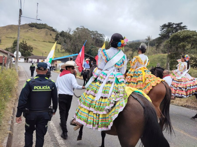 Las candidatas al Reinado de la Palma de Cera, la Policía Nacional, las empresas procesadoras de leche de la zona y demás ciudadanos desfilaron en un abrazo de alegría al regresar a su pueblo.