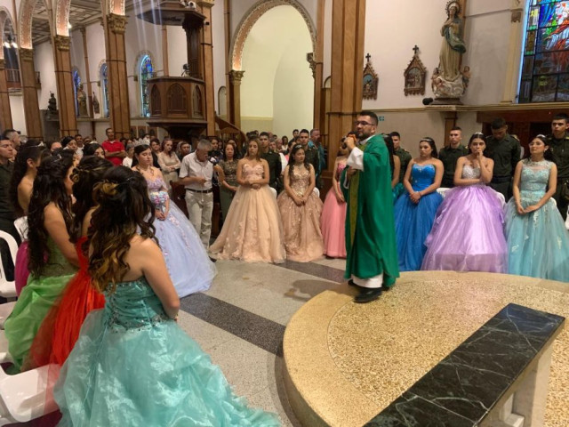 13 quinceañeras de Neira festejaron de manera conjunta su cumpleaños con una eucaristía que se celebró en el Templo San Juan Bautista de ese municipio del Área Metropolitana del Centrosur de Caldas.