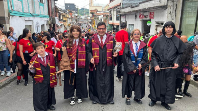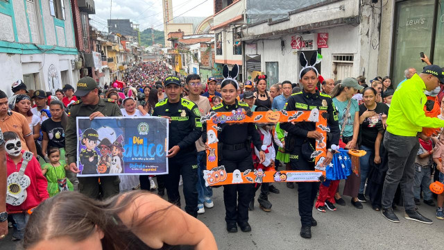 Cientos de niños y adultos disfrazados realizaron el recorrido amenizados por las bandas de la Institución Educativa de Occidente.