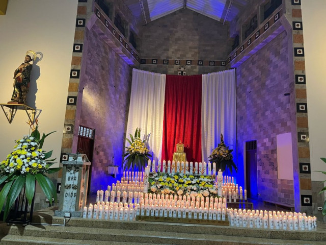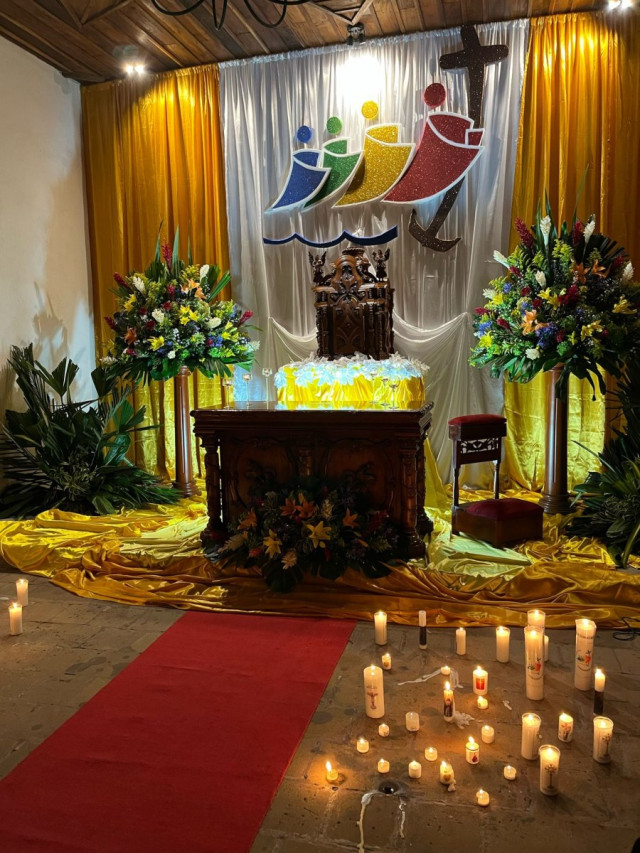 Adoración al monumento Jesús Eucaristía en el templo parroquial Nuestra Señora del Rosario de Aranzazu.