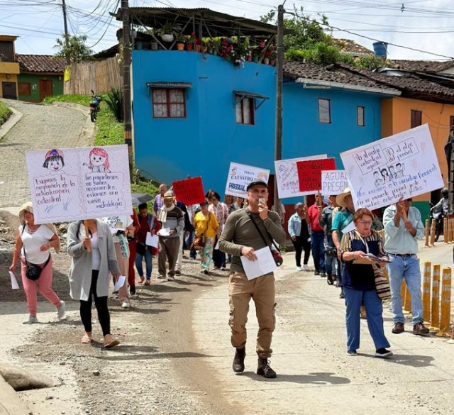 En el parque del Hospital de Aguadas (Caldas) un grupo de personas molestas por el incremento en el pago del impuesto predial se unieron a una marcha pacífica, donde se lanzaron arengas, frases y voces de protesta por este incremento en el municipio.