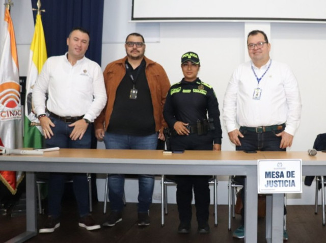 Mesa de Justicia: Jesús Iván Ospina, alcalde. Fiscalía, Policía Nacional y el personero de Pensilvania, Esteban Rubio.