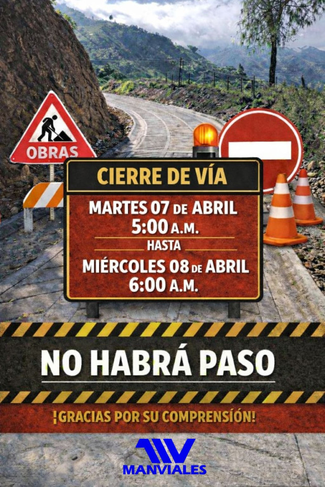 La vía entre Pensilvania y el corregimiento de Pueblo Nuevo cerrara este martes 7 de abril a partir de las 5:00 a. m. tras la construcción de 60 metros de placa huellas en el sector La Mercedes (tramo 3).