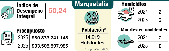 Marquetalia es seguro. Tenemos retos como el microtráfico. No podría decir que en el municipio hay bandas criminales ni mucho menos. Es un municipio pequeño, de 90 kilómetros cuadrados. Hemos venido haciendo un trabajo importante con la Policía, el Ejército, constantemente lideramos caminatas por la seguridad en las veredas. Dentro de los proyectos que tenemos está la instalación de 14 cámaras de seguridad, un esfuerzo con la Gobernación, de cerca de $1.000 millones. En el 2025 se capturaron en Marquetalia a algunas personas que tenían órdenes de captura por asesinatos que habían cometido en otras localidades, también se aprehendieron sujetos que asesinaron en el municipio. A uno le da tranquilidad poder decirle a la gente que, a pesar de que se han registrado fallecidos, la autoridad está actuando de la manera correcta y se están esclareciendo los móviles de los delitos.