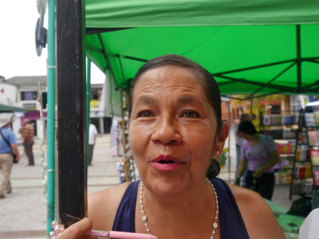 Sonia Castaño, vendedora de artesanías, asegura que gracias a lo recaudado podrá pagar deudas y comprar nuevos insumos: “Hacemos todo con amor. Cada detalle lleva nuestro esfuerzo”.