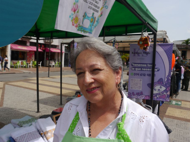 Valentina Giraldo, propietaria del almacén Mundo del Hogar, explica que participar en la feria es una forma de impulsar sus productos y continuar una tradición familiar: “Es un espacio para crecer y darnos a conocer”.