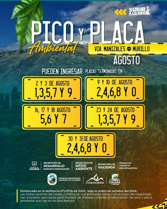 Lea más Vía Manizales - Murillo: ¿hay pico y placa este jueves festivo, 7 de agosto?
