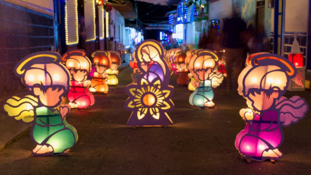 En la Noche del Fuego, Salamina se llena de faroles, decoración navideña y visitantes que acuden a este pueblo patrimonio de Caldas para disfrutar de la tradición. En la foto, la carrera 3 por el sector del cementerio.