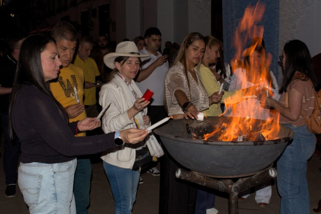Encendida del fuego en el atrio de la Basílica Menor Inmaculada Concepción.