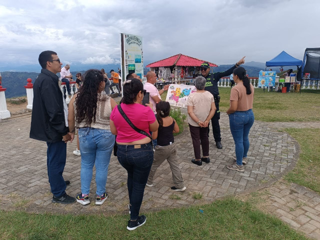 La Policía de Turismo en el municipio de Belalcázar (Caldas) desarrolló con éxito un programa de stand de información turística instalado en uno de los principales atractivos de la región, el monumento Cristo Rey.