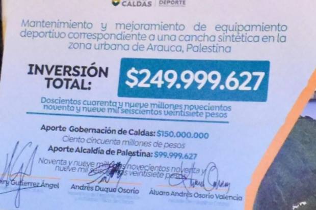 El corregimiento de Arauca (Palestina) tendrá cancha de fútbol nueva. Así lo afirma la Alcaldía, luego de una gestión ante la Gobernación de Caldas para aunar esfuerzos y contar con $249 millones 999 mil.