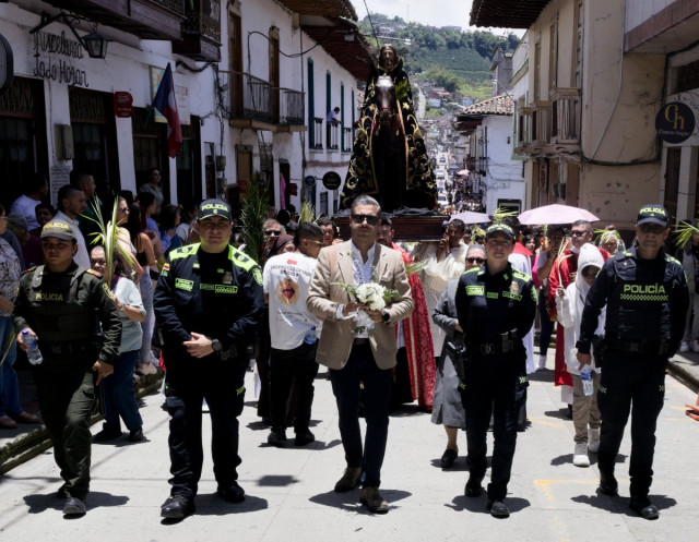 En este pueblo patrimonio del Norte de Caldas, la afluencia en las calles fue el complemento de la procesión que marca el inicio de la Semana Santa.