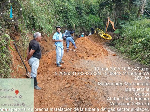 “Gracias al trabajo articulado entre la comunidad del sector El Placer, el Gobierno de Marquetalia y la empresa Proviservicios, logramos importantes avances en la instalación y sembrado de la red principal de gas, explica.
