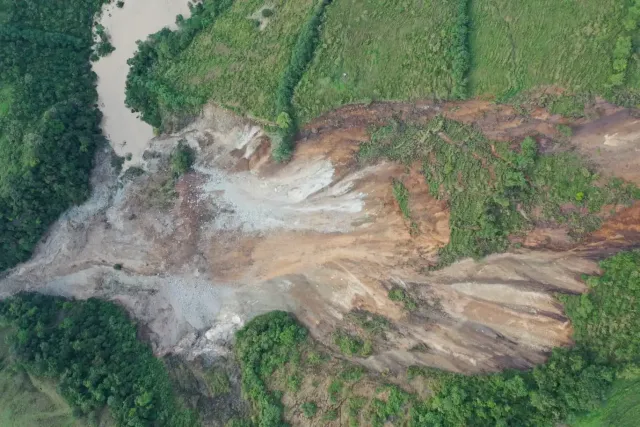 Fotos | Corpocaldas | LA PATRIA Deslizamiento sobre el río Pozo.