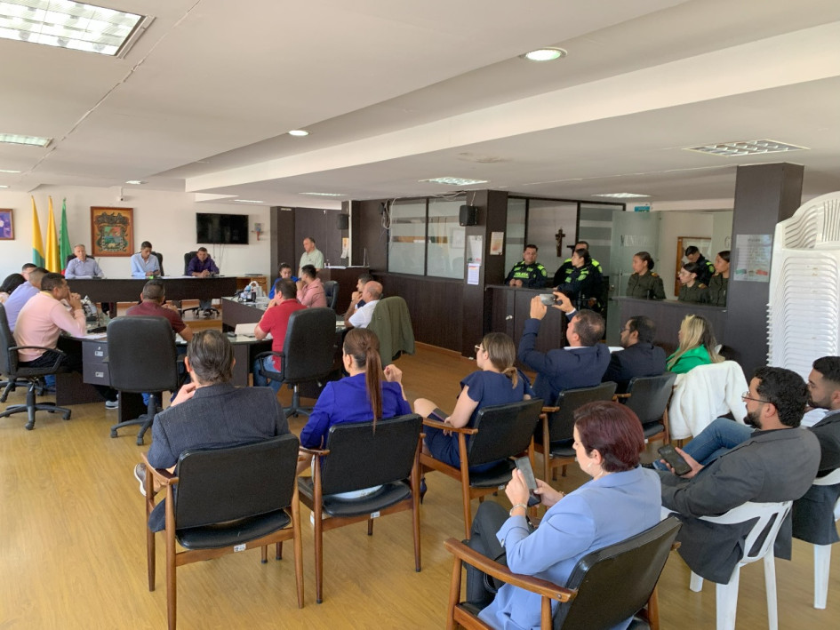 Momento de la sesión del Concejo de Neira con el acompañamiento de la Policía.