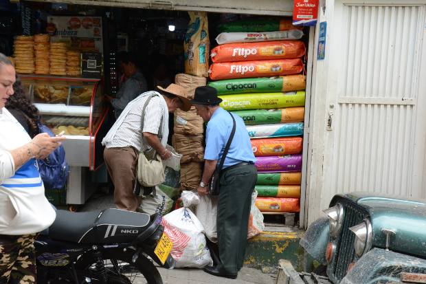 Aceneth Marulanda llegó de un sector de Cantadelicia. "Me da un paquetico", le dice a don Miguel Ángel. Ella cuenta que cada 15 o 20 días llega con su familia a mercar. "Aquí hay de todo, panela, frijol, aceite, mantequilla. Y también ropa, zapatos, electrodomésticos".