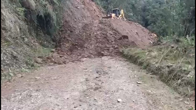 "La vía continúa cerrada. Los combos permanecen en el sector avanzando en la remoción del derrumbe.