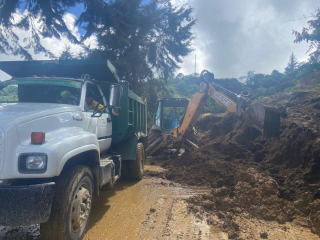 Alrededor de las 3:00 de la tarde continúan las labores de remoción de material de la vía, donde ya hay paso hablilitado.