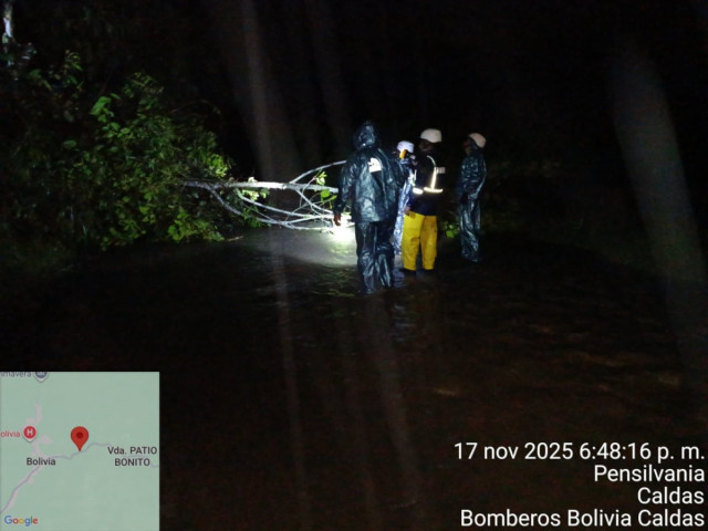 "Se reporta pérdida parcial de la vía Pensilvania – Manzanares, en el sector La Estrella. Actualmente hay paso a un solo carril. Se recomienda a los usuarios transitar con precaución".
