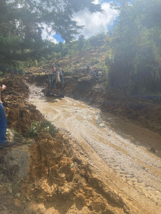 "En el corredor La Linda – La Cabaña, se reportan varios puntos con caída de material y árboles. La maquinaria iniciará desplazamiento para normalizar el tránsito".