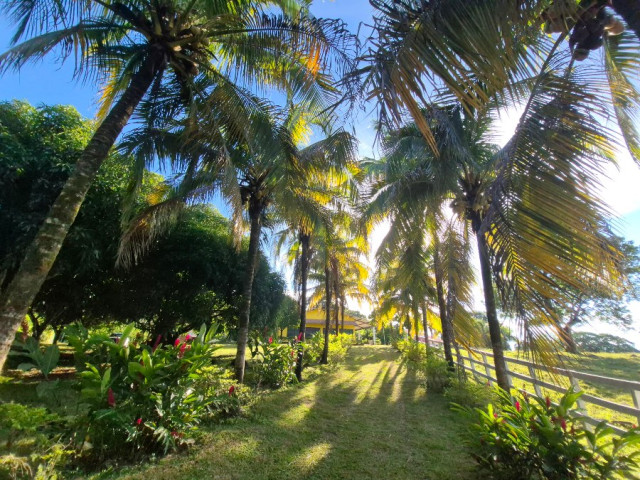 El lugar cuenta con piscinas de agua natural, una cascada de día y otra de luces en la noche, cocina equipada, zona BBQ, frutales, una sala de eventos con capacidad para 100 personas, capilla, zona de camping y senderos. Todo está rodeado por los sonidos de una guente de agua bautizada como Dos Quebradas , el canto de tucanes y la presencia ocasional de monos aulladores, iguanas o martines pescadores.