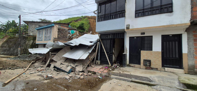 Foto | Cortesía | LA PATRIA | LA PATRIA Se presentó un nuevo desprendimiento de tierra en el barrio San Carlos de Chinchiná. Cuatro casas resultaron afectadas. No hubo lesionados, ya que las viviendas estaban evacuadas.
