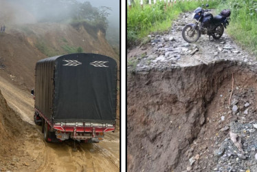 Caldas: arreglan una vía donde se rodó un vehículo, envían maquinaria y atienden con ayuda de la comunidad