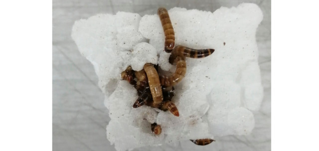 Con el apoyo de la Facultad de Medicina Veterinaria y de Zootecnia de la UNAL, Bonilla y su equipo diseñaron un experimento con cinco dietas que combinaban icopor y salvado de trigo. La mezcla más efectiva —25 % de icopor y 75 % de salvado— permitió que las larvas crecieran normalmente y mantuvieran su actividad metabólica.