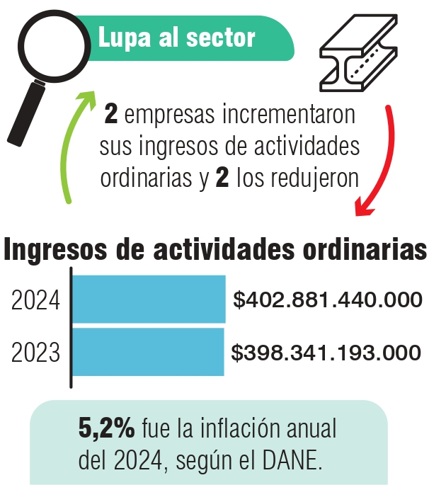 1,13% crecieron en promedio los ingresos de actividades ordinarias del sector de fabricación de otros productos elaborados de metalen Caldas (4 empresas) en el 2024.