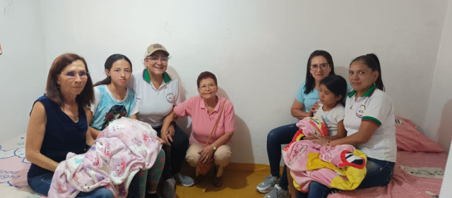 “Visitamos a una familia de la vereda donde habían unos niños que dormían en unos colchoncitos muy feítos. Decidimos que íbamos regalando los colchones y cumplimos, incluso les dimos cobijas, almohadas y tendidos de cama. Los tuvimos que llevar a lomo de mula porque era un camino muy estrecho y eran dos colchones. Nosotras íbamos a pie pegadas a la cola del animal”.