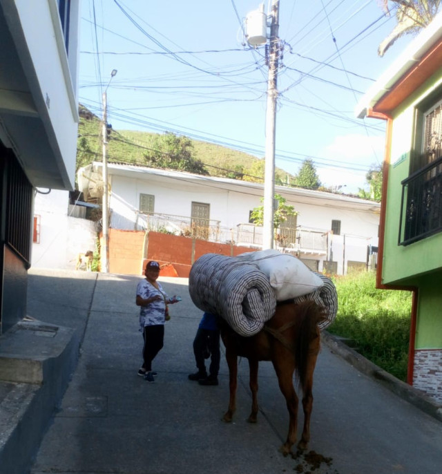 A lomo de mula cargaron los primeros colchones que entregó 10 Mil Sonrisas, Alba Lucy Marín, su creadora, recuerda ese momento y se conmueve al saber que siempre hallan la forma de hacer llegar donaciones.