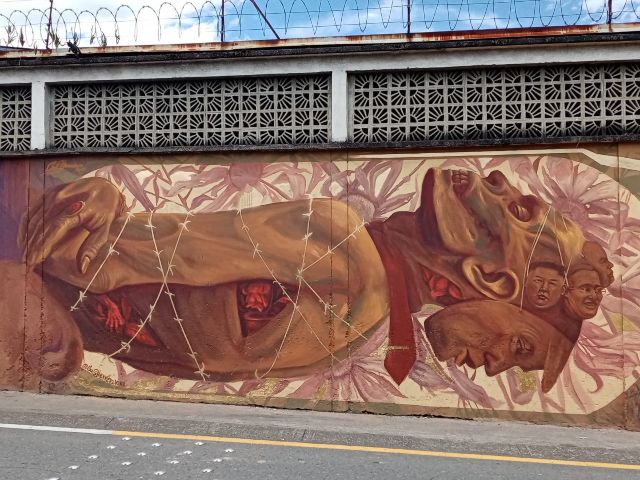 En el festival del año pasado embellecieron las fachadas de unas casas del barrio Departamental, en la salida hacia el pueblo vecino de Santa Rosa de Cabal (Risaralda). La temática de ese festival fue la resistencia.