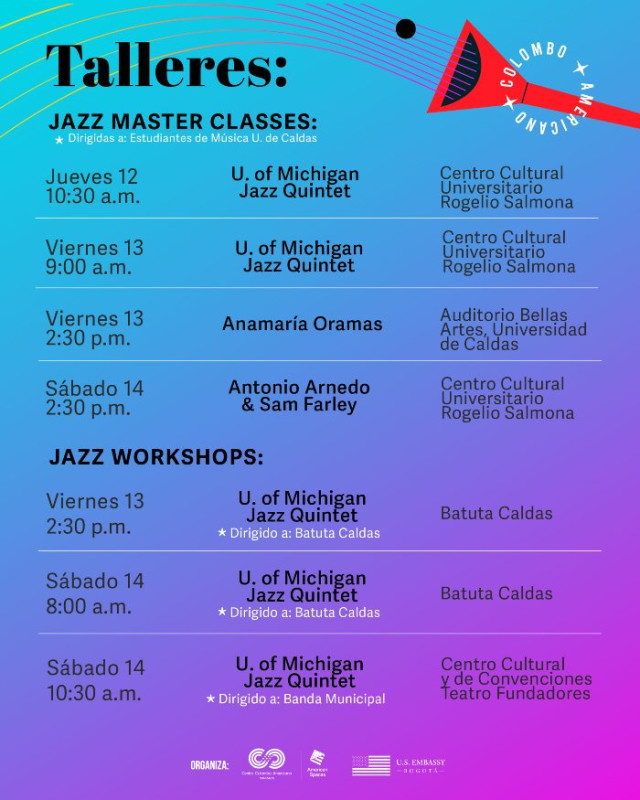 Este año, uno de los invitados especiales es el University of Michigan Jazz Quintet (Estados Unidos), ensamble que incluye a Manizales como parte de su gira por la red de Centros Colombo Americanos en Colombia.