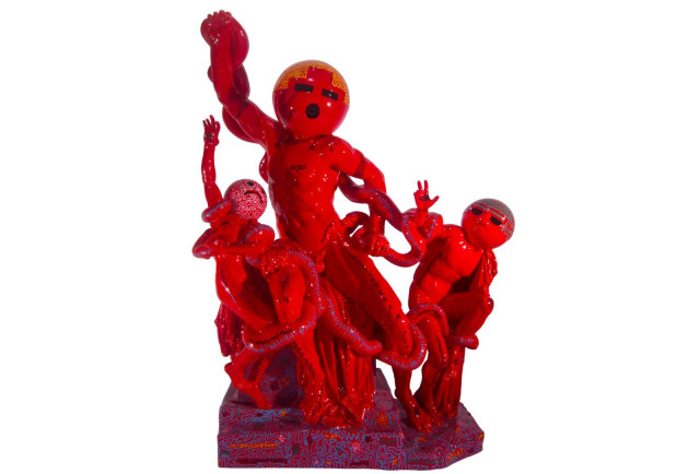 Esta escultura se llama “Laocoön and His Nemojis” de Jhonny López