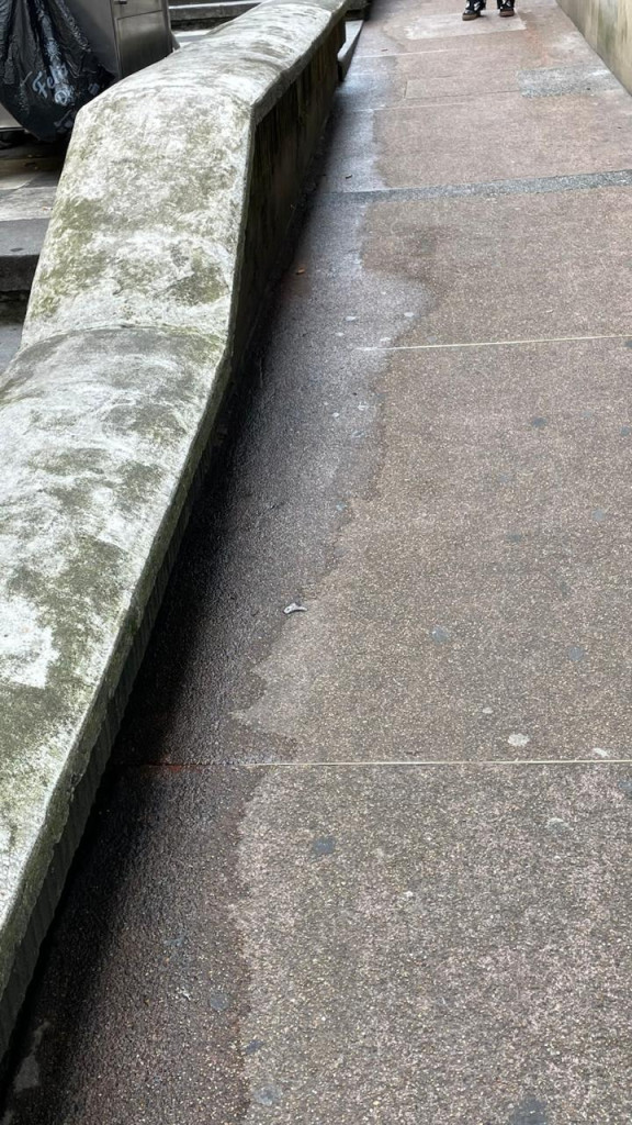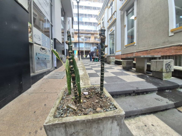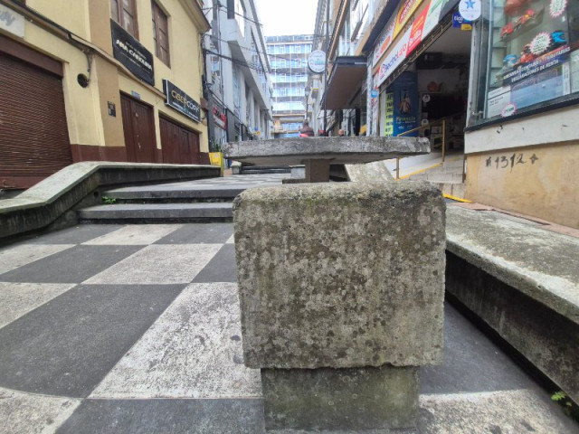 Según explicaron, las mesas, sillas y muros del pasaje presentan deterioro evidente, con presencia de lama y musgo en sus bordes, lo que genera un aspecto descuidado y poco atractivo.