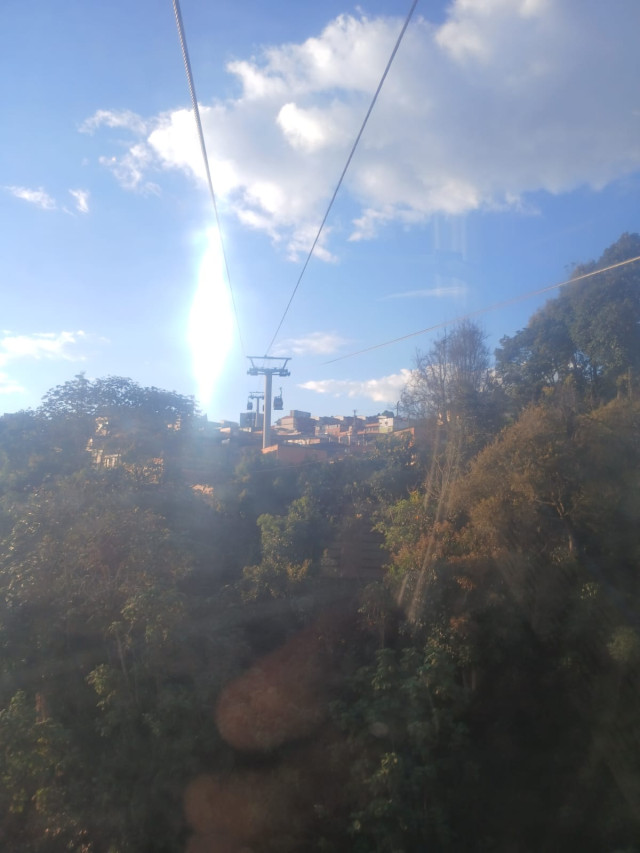 Usuarios frecuentes del Cable aéreo de Manizales expresando en días pasados su molestia por la altura de los árboles que están en el trayecto entre la estación de Los Cámbulos y La Fuente, ya que según ellos estaban golpeando las cabinas.